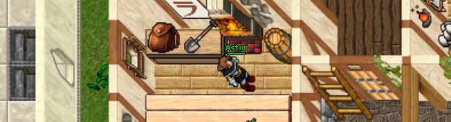 Para falar com ele você deve iniciar a conversa com "Hi", em seguida você pode falar OFFER para ver oque ele compra/vende, HELP para ver se ele tem algum missão disponível para você e JOB para ver qual o serviço dele.
